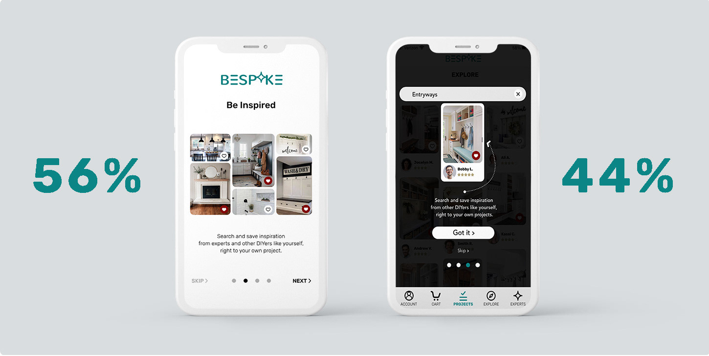 BESPOKE users need a way to safely and effectively utilize the advice from our experts to get the best end result for their DIY home project. We will know this to be true when we see good ratings and/or quality before and after pictures from our user’s interaction with BESPOKE experts. Users will showcase successful finished projects in the BESPOKE gallery for other users to pull inspiration from and connect with tried and true experts.